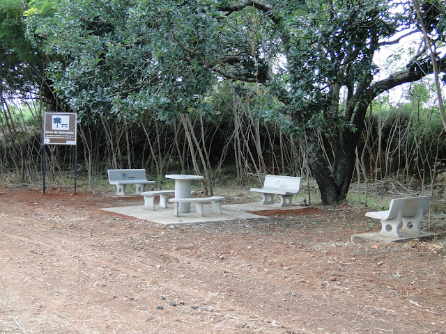 Em frente a estes dois projetos, que totalizam 14.800  m2 de área preservada, fizemos esta área de  descanso. Se você transitar por aqui, seja bem vindo enquanto descansa e toma seu lanche, curta estas paisagens.