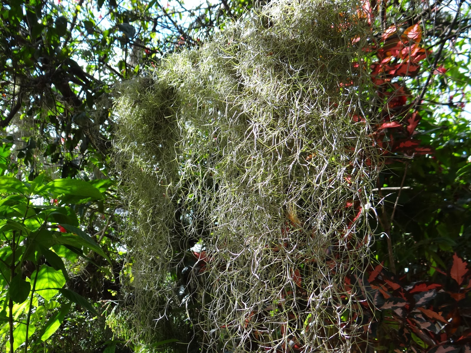 Originaria das Américas tropical e subtropical, esta difere muito na forma de crescimento das outras bromélias. Suas folhas muito finas e extremamente alongadas formam extensos fios , os quais são completamente desprovidos de raízes quando o individuo é adulto. Tais fios caem entrelaçados dos galhos altos das árvores em locais ensolarados e onde exista umidade disponível no ar.