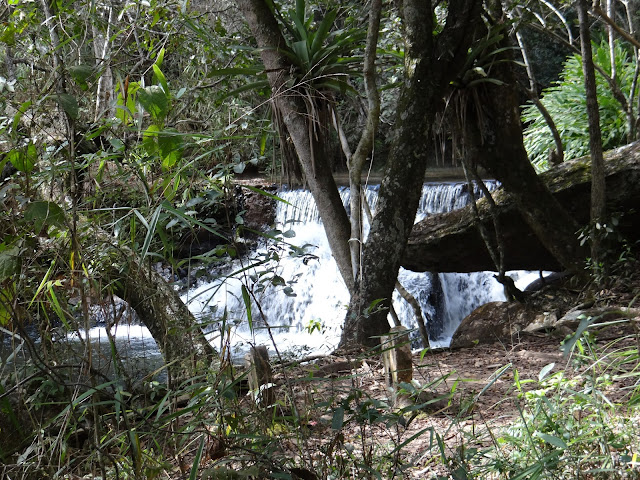 Deixei o aspersor ligado para se ter noção da beleza da planta com ele ligado, local de paz, meditação, observação de aves, sol filtrado pelos raios solares, em meio troncos, ramos das plantas. Por aqui gosto de fazer minhas orações e Louvar a Deus.