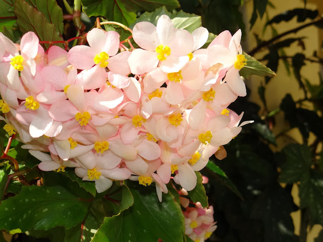 Produz inflorescências com numerosas flores róseas e cerosas durante o verão.