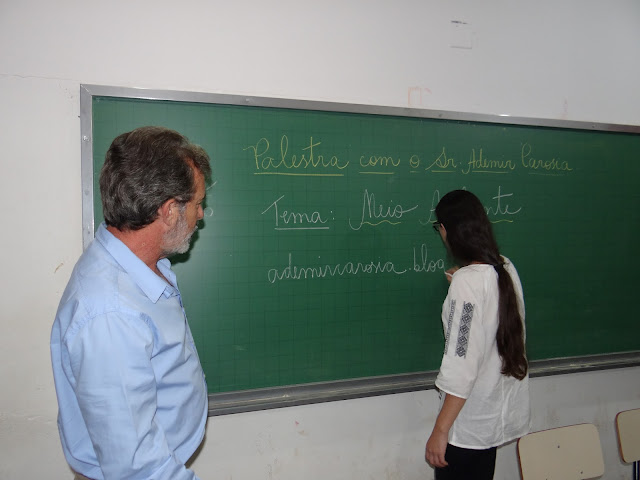 Tivemos a honra de estar falando com os alunos sobre o tema Meio ambiente. Agradeço o convite que me foi feito  pelos professores e amigos Dayana e Reginei Marcelo.  Os alunos participaram de forma efetiva, fazendo perguntas inteligentes, o que demonstra interesse por este tema tão atual, e necessário nos dias atuais. Obrigado.